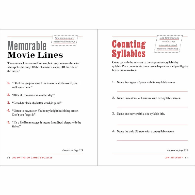 - Book features 299 games and puzzles to challenge your brain.