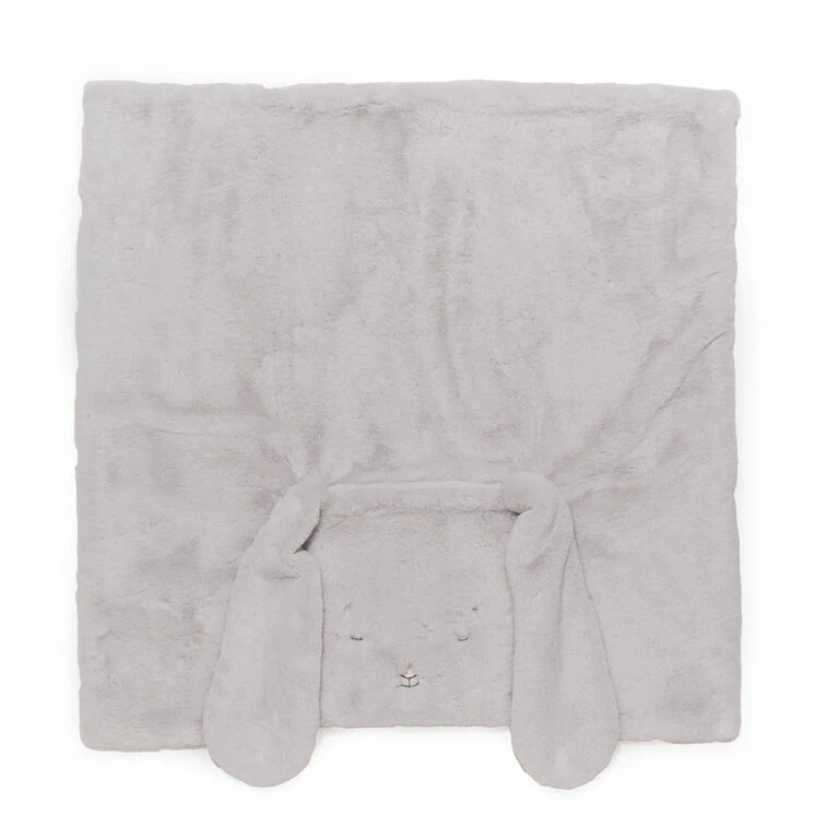 - Tuck me in gray blanket from Bunnies By The Bay features embroidered bunny faces, plush ears and pocket.