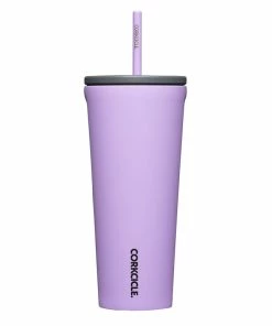 - Corkcicle lilac stainless steel insulated tumbler features a solid lid with ceramic straw.