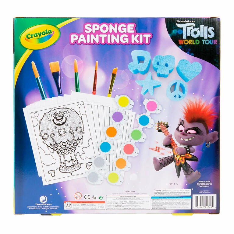 - Crayola Trolls paint set includes supplies for making sponge paint pictures.