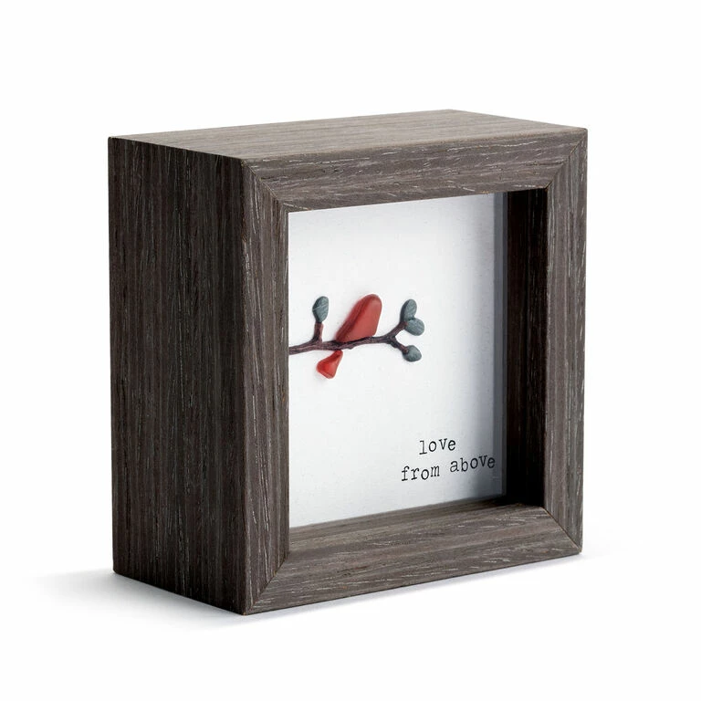 A visit from a cardinal is thought to represent a loved one reaching out to us from heaven. This sweet shadow box is sure to provide comfort and encouragement to someone who is missing their loved one. The 4-inch square box sits on a shelf and is a wonderful accent piece to any home decor. Pretty shadow box makes a tender gift for anyone.