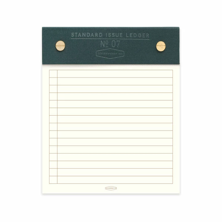 Take note…you’ll be on-trend and prepared to jot down every important detail when you add this stylish Standard Issue post bound note pad to your deskscape. With a dark green book cloth header and 120 perforated and lined sheets, you’ll be set up in note-taking style. Lined ledger makes a great gift to celebrate a grad or a new job.