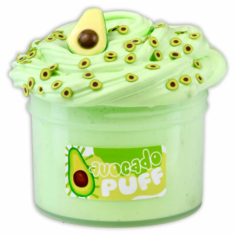 - Dope Slimes Avocado Puff butter slime features light green color, avocado scent, polymer clay bits and an avocado charm.