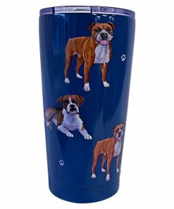 This Serengeti tumbler from E&S Pets comes with a BPA-free, spill-proof lid with an open-and-close slider. Stainless steel dark blue tumbler features brown and white boxers in fun poses along with tiny white paw prints. Using special 3D German printing technology with a high gloss finish, this fun dog tumbler is the perfect gift for boxer owners and dog lovers alike. It makes a great companion when walking your favorite fur baby, running errands and more.