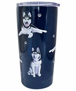 This Serengeti tumbler from E&S Pets comes with a BPA-free, spill-proof lid with an open-and-close slider. Stainless steel dark blue tumbler features Siberian huskies in fun poses along with tiny paw prints. Using special 3D German printing technology with a high gloss finish, this fun dog tumbler is the perfect gift for husky owners and dog lovers alike. It makes a great companion when walking your favorite fur baby, running errands and more.