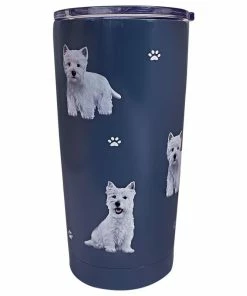 This Serengeti tumbler from E&S Pets comes with a BPA-free, spill-proof lid with an open-and-close slider. Stainless steel dark blue tumbler features West Highland white terrier dogs in fun poses along with tiny paw prints. Using special 3D German printing technology with a high gloss finish, this fun dog tumbler is the perfect gift for Westie owners and dog lovers alike. It makes a great companion when walking your favorite fur baby, running errands and more.