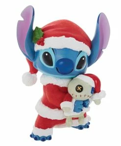 - High-quality stone resin figurine features Disney Stitch wearing a Santa suit and holding Scrump.