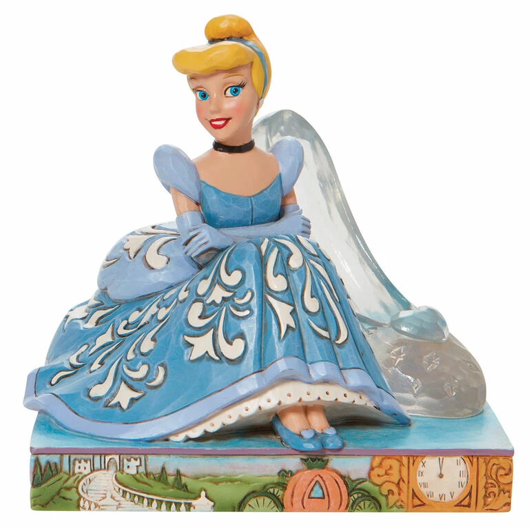 - Stone resin Jim Shore Disney figurine features Cinderella and her iconic glass slipper.