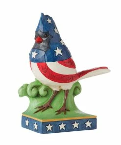 - High-quality stone resin Jim Shore figurine features an American flag painted cardinal.