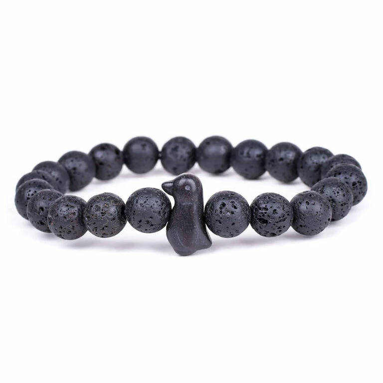 - Stretch bracelet features penguin and blackout stone beads along with an assigned real penguin to track online.