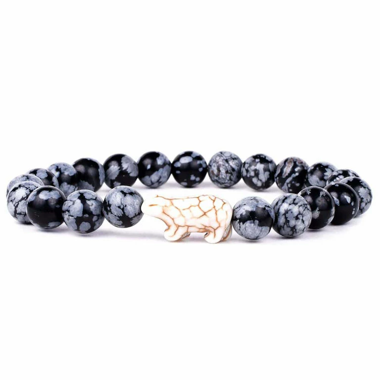 - Stretch bracelet features polar bear and papillae stone beads along with an assigned real polar bear to track online.