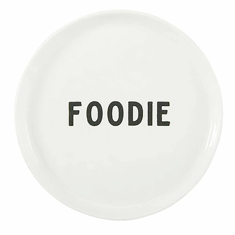 Dollop your favorite dips, snag some snacks and dish up a dessert or two on these cute, white ceramic dishes from Santa Barbara Design Studio. Perfect for guests to use as appetizer plates during a party or for everyday use, each plate features a center “Foodie” message in black, all-caps lettering. Set of three small plates makes a great housewarming or wedding gift.