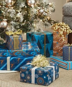 Hallmark Elegant Blues 4-Pack Blue And Gold Reversible Wrapping Paper, 150 Sq. Ft.