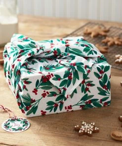 Hallmark 26″ Greenery And Berries Christmas Fabric Gift Wrap With Twine And Tag