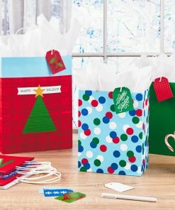 Hallmark Colorful Christmas Gift Bags With Mix And Match Tags, Assorted Sizes And Designs