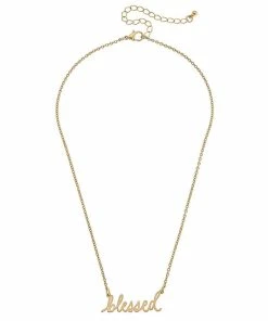 Worn Gold Julia Blessed Script Delicate Chain Necklace, 16″