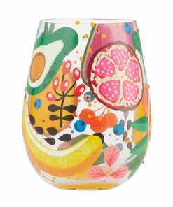 Lolita Tropical Fruit Handpainted Stemless Wine Glass, 20 Oz.