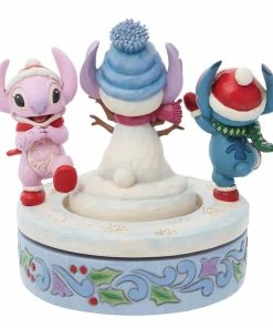 Enesco Jim Shore Disney Stitch And Angel Build A Snowman Rotating Figurine, 6″