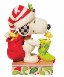 Enesco Jim Shore Peanuts Snoopy And Woodstock With Stocking Figurine, 7″