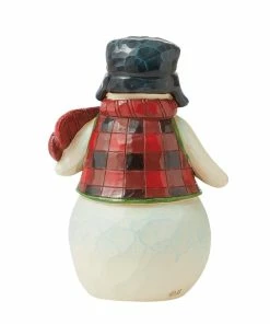 Enesco Jim Shore Pint-Sized Snowman In Plaid Figurine, 5″