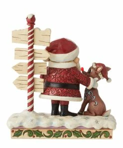Enesco Jim Shore Rudolph, Santa And North Pole Sign Figurine, 7.68″