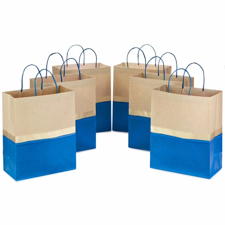 Celebrate everyday occasions and special events with this set of 6 identical gift bags. Kraft paper bags feature a bold dark blue-colored base and a horizontal stripe of gold foil. These gift bags are ideal to have on hand for any gifting occasion—like birthdays, weddings, bridal showers, baby showers and more. Hallmark large-sized bags hold gifts like toys, stuffed animals, fashion dolls, books, puzzles, clothing items and more.