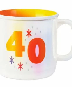 Celebrate a fortieth birthday with a cup of coffee or a hot toddy in this iridescent-glazed mug that features a golden-yellow “40” design with confetti accents and a coordinating yellow interior. It’s the perfect milestone birthday gift for enjoying the big forty!