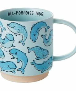 - Aqua blue ceramic mug features a dolphin design paired with a punny message on the inside rim, an extra-wide handle and recessed bottom designed for stacking.