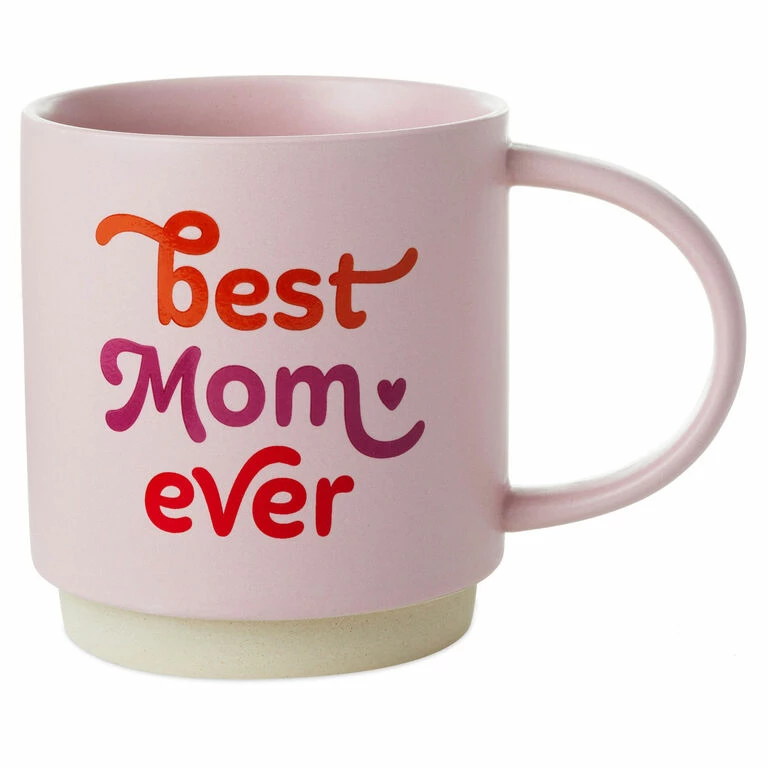Let her know about her elevated status with this “Best Mom Ever” ceramic mug in light pink with orange, red and purple lettering. She’ll have a smile on her face whenever she starts her day by filling this coffee cup with her favorite brew. Pair with flavored coffee beans for a thoughtful gift.