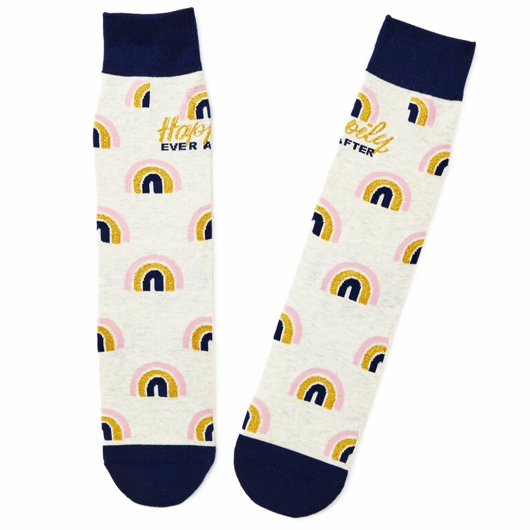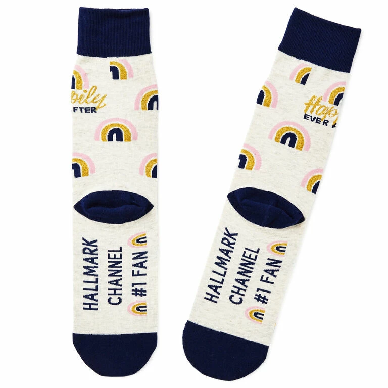 - Hallmark Channel novelty crew socks feature a design of rainbows and a whimsical quote.