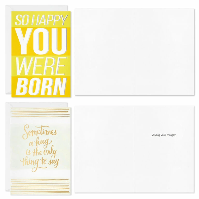 - Includes 12 cards and 12 envelopes: 7 birthday cards, 1 encouragement card, 1 congratulations card, 1 thank-you card, 1 sympathy card and 1 blank card.
