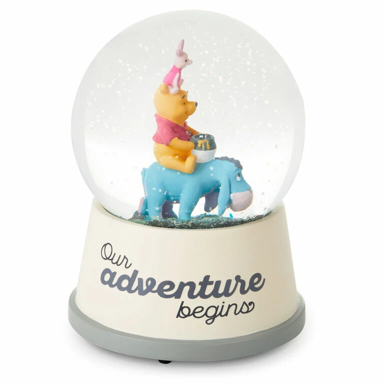 - Musical Winnie the Pooh resin and glass snow globe features a sweet message on the base and plays music.