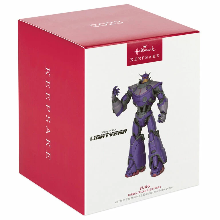 Shrouded in shadow and mystery, Zurg captains the alien spaceship that jeopardizes Buzz Lightyear’s mission and teammates. Zurg’s agenda is unclear, but the threat looms large for legendary Space Ranger, Buzz Lightyear. This Christmas tree ornament features the antagonist’s imposing presence from the Disney/Pixar movie “Lightyear.”