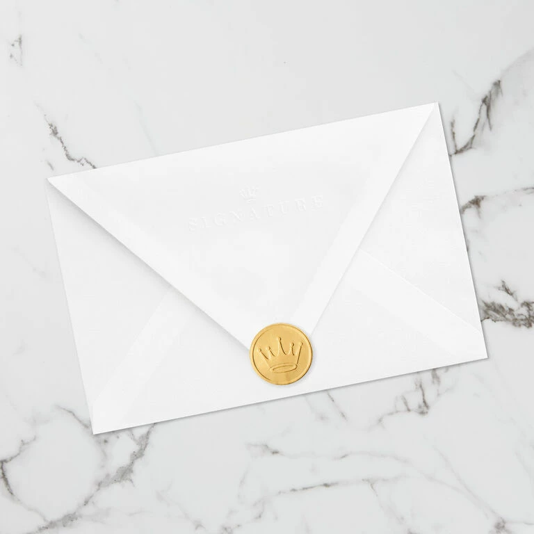 - Includes one card and one envelope with a Gold Crown seal. Envelope color may vary.