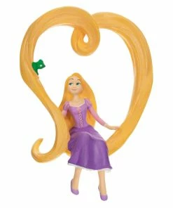 Be inspired to follow your dreams when you hang this “Tangled” Christmas tree ornament. Rapunzel and her chameleon pal Pascal make good use of the optimistic princess’s long golden hair by forming a heart-shaped swing in this fun decoration.
