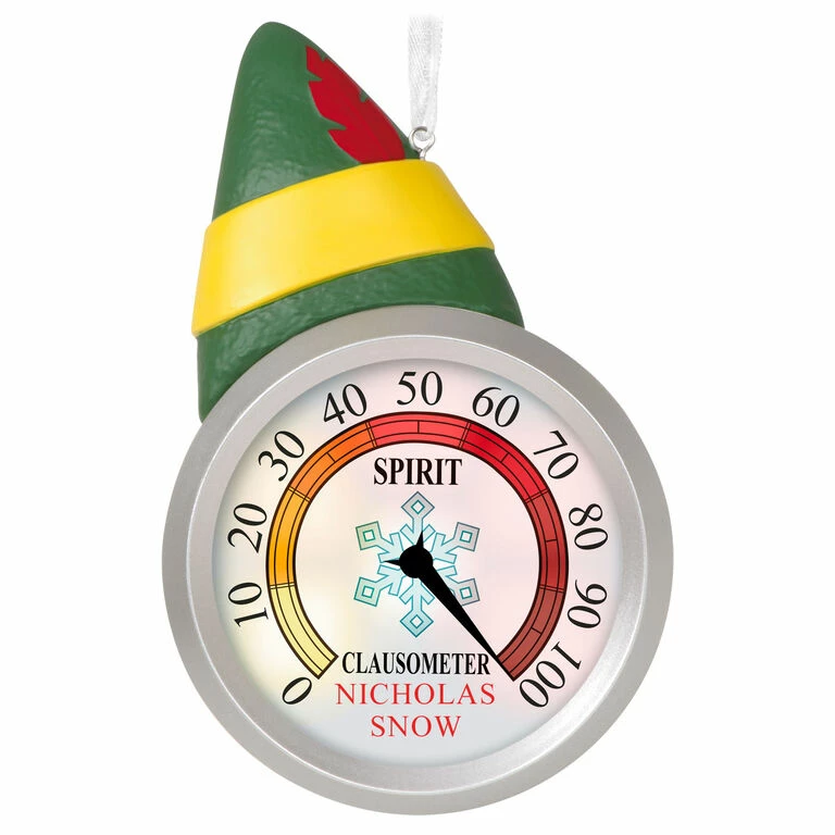Spread Christmas cheer with this personalized Christmas tree ornament. Inspired by the hilarious holiday movie “Elf,” the Clausometer design lets you choose the “spirit” level, then customize with a name, date or short message. Simply press the button to see the design light up and boost the spirit of the season.
