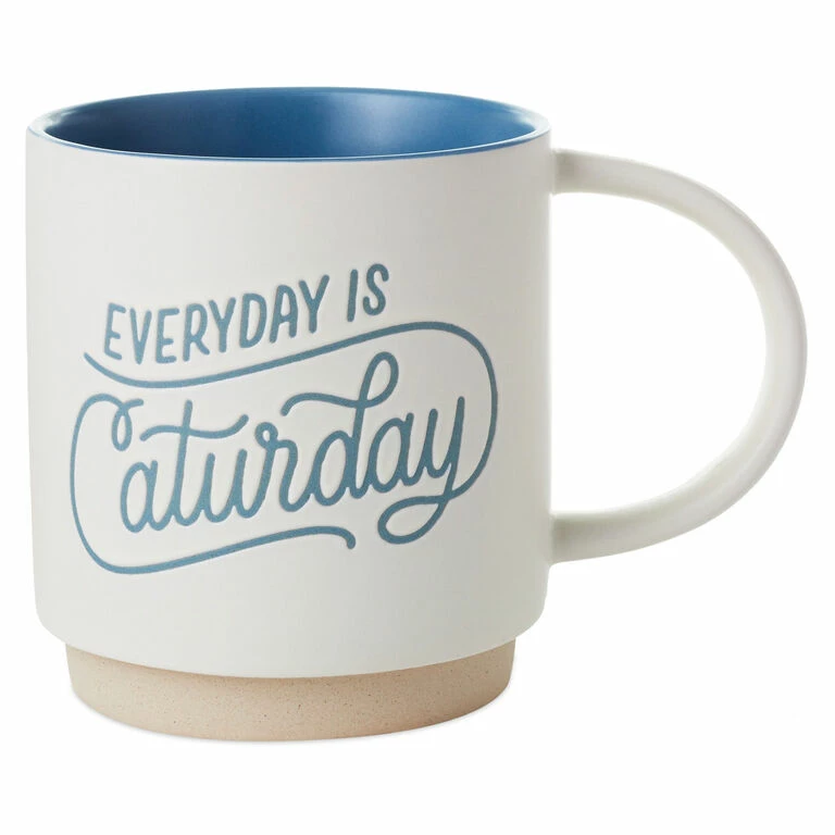 Celebrate your feline friends when you sip your morning coffee from this “Everyday is Caturday” white ceramic mug with light blue lettering. Perfect for the cat lover in your life, this fun coffee cup shows off the love you have for your cats daily.