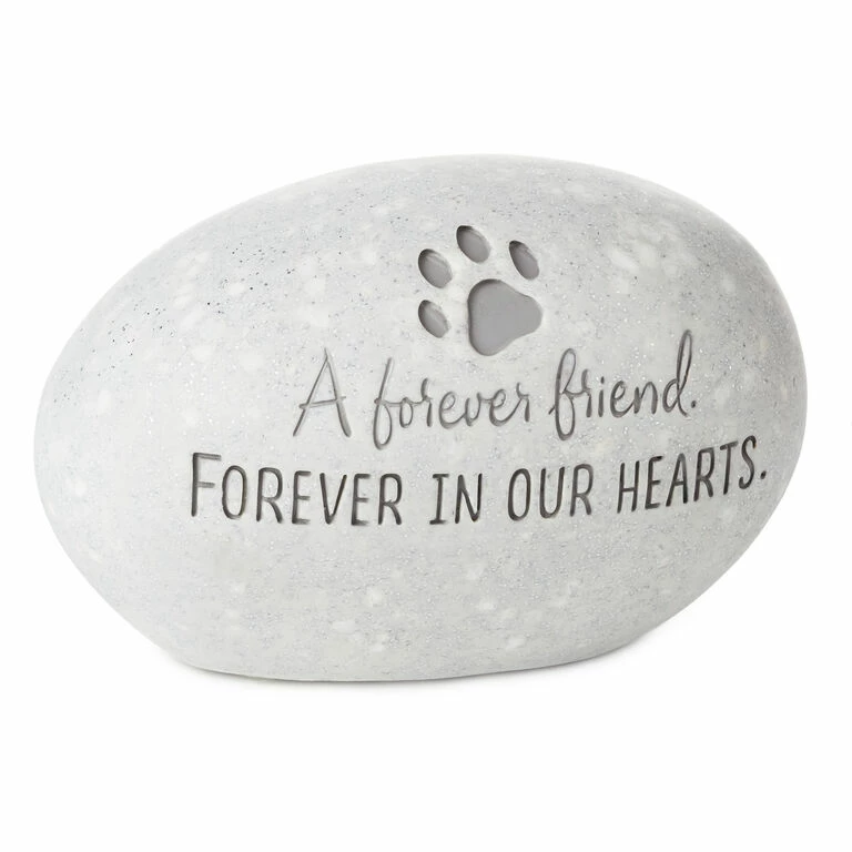 Encourage memories of a beloved pet who has crossed the rainbow bridge with this natural speckled garden stone that features a paw print design paired with a sweet message. Give as a sympathy gift to a friend or family member who has recently lost a family pet, or keep for yourself. Place the memorial stone near a pet’s favorite indoor or outdoor spot for added solace.