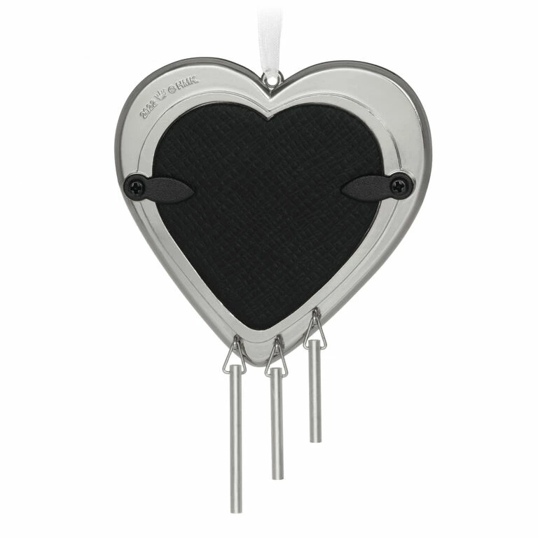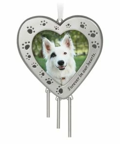 Our furry family members hold a place in our hearts long after they’re gone. Share this lovely metal Christmas tree ornament as a remembrance gift with someone who has lost their beloved pet, or add it to your own decor with a favorite photo to honor a special dog or cat that has crossed the Rainbow Bridge. Heart-shaped picture frame features a paw print design in silver-tone metal with dangling tubes that chime when moved.