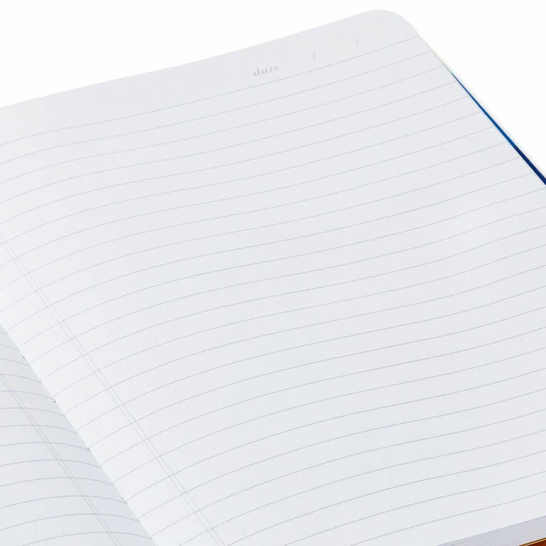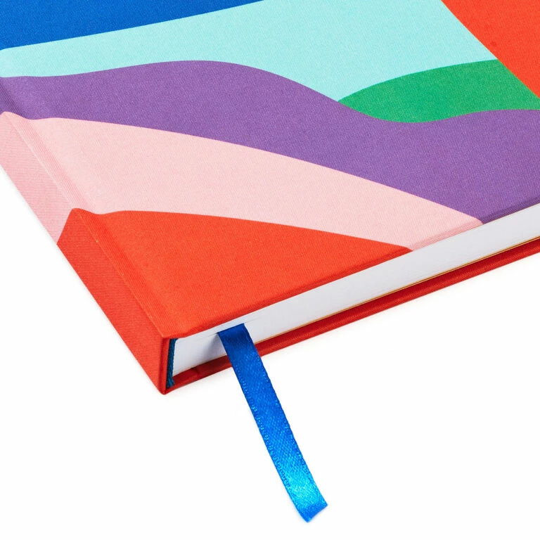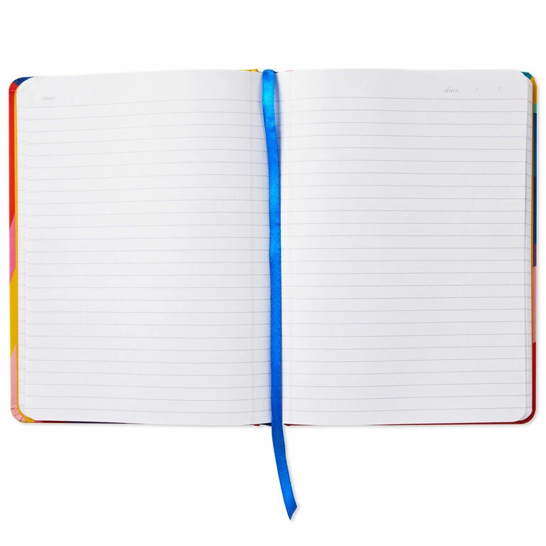 Keep track of favorite quotes, fresh ideas or creative flashes in this hardcover notebook. Bold strokes of color make a vibrant background for a silver disc with positive message on the cover. Each lined page includes a space at the top for the date, and an attached blue ribbon lets you mark a particular page or current place.