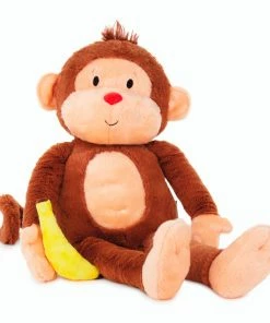Kids will love hanging around with their new, musical monkey friend! Our adorable plush monkey loves singing, swinging, being tickled and most of all… bananas! This soft and cuddly stuffed animal features different activation points (including tickling, bouncing and covering its mouth) that will trigger a variety of cute phrases and sounds. This fun gift coordinates with our Goin’ Bananas for Bananas! board book (sold separately).