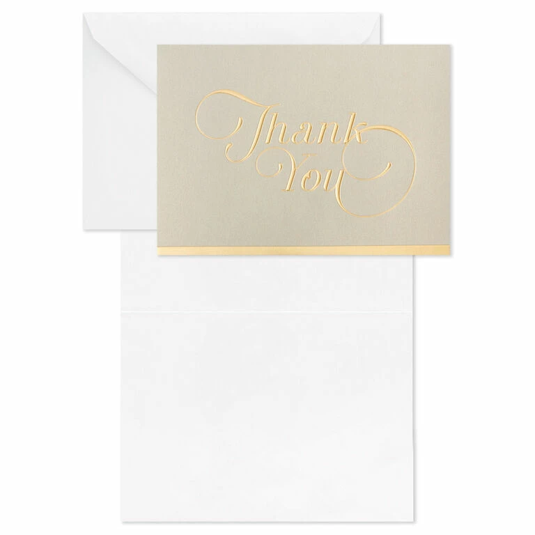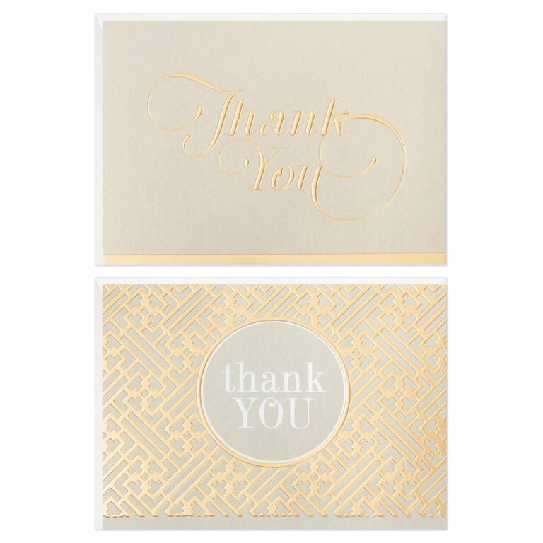 Blank thank-you notes assortment features two elegant designs with embossing and gold foil accents. This multipack of cards is perfect for sharing notes of appreciation with business associates, friends and family after birthdays, bridal showers, weddings, interviews and more.