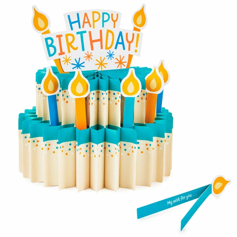 - Paper Wonder birthday cake pop-up honeycomb decoration features 8 paper candles to write birthday wishes.