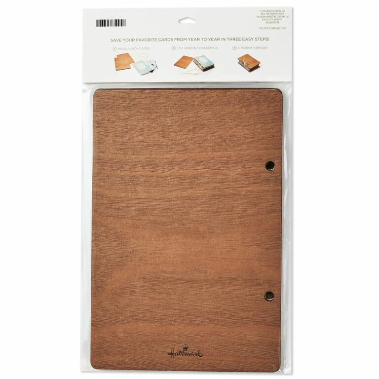 - Includes 2 decorative wood panels for front and back cover, grosgrain ribbon and paper template to use as hole punch guide. (Hole punch not included.)