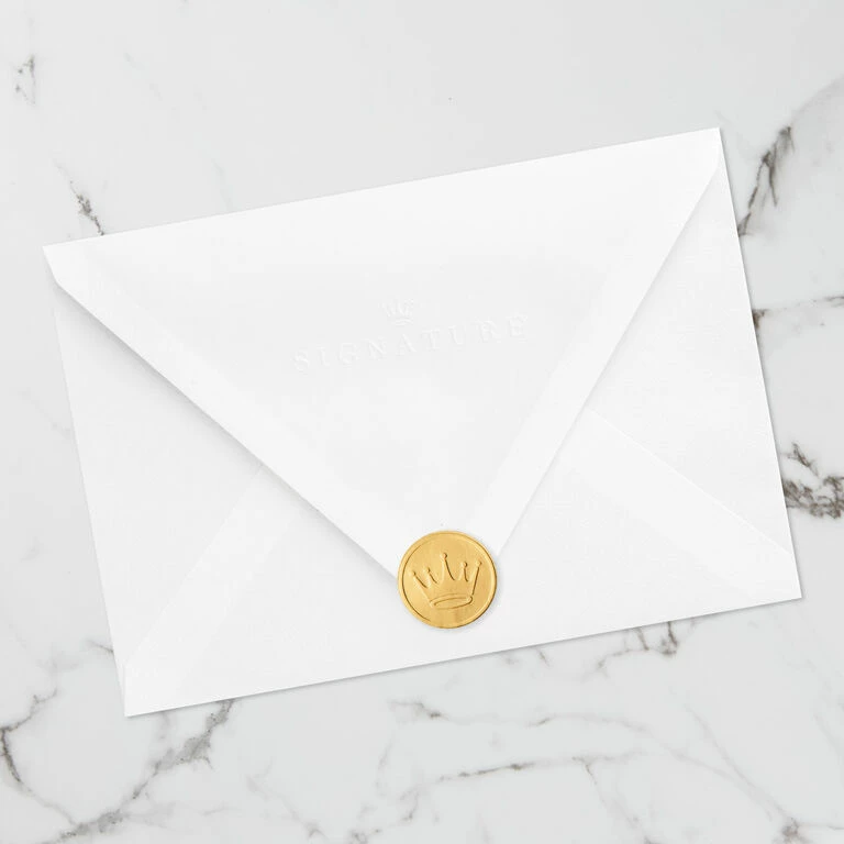 - Includes one card and one envelope with a Gold Crown seal. Envelope color may vary.