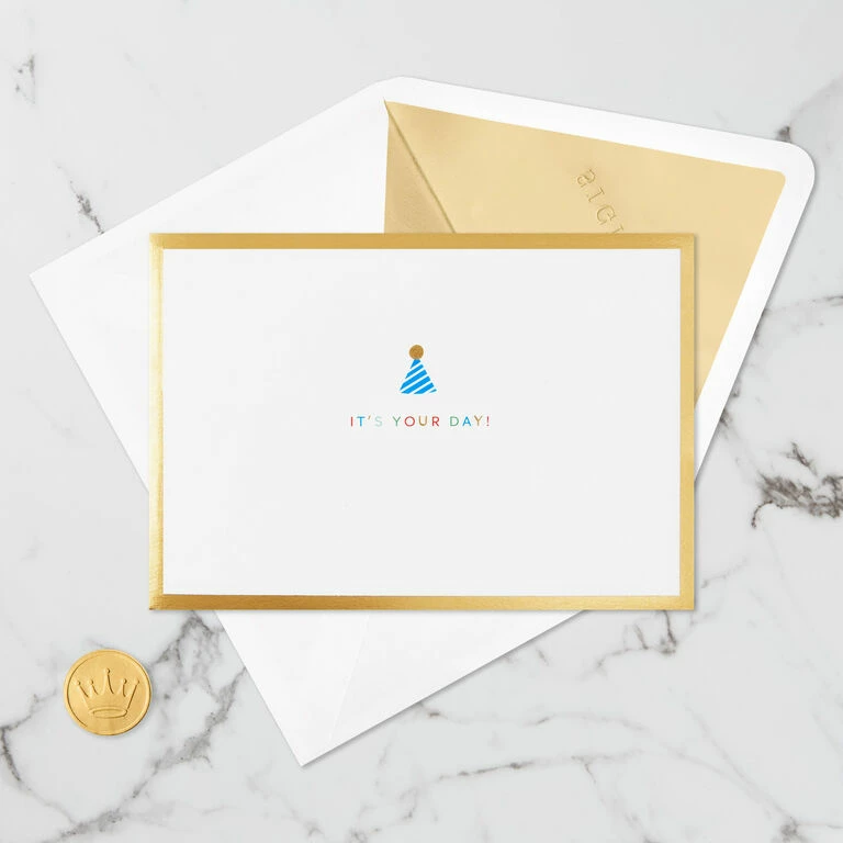 - Includes one card and one lined envelope with a Gold Crown seal. Envelope color may vary.