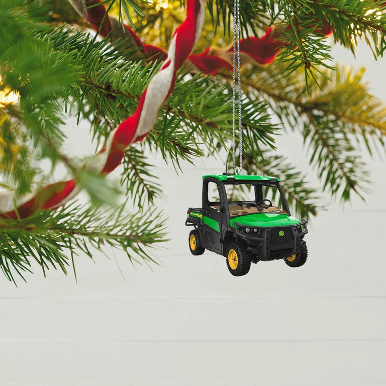 Bring some brute power to the Christmas tree with this ornament based on the popular 3-seat crossover utility vehicle. Boasting John Deere’s signature green and yellow colors, this die-cast ornament features wheels that turn.