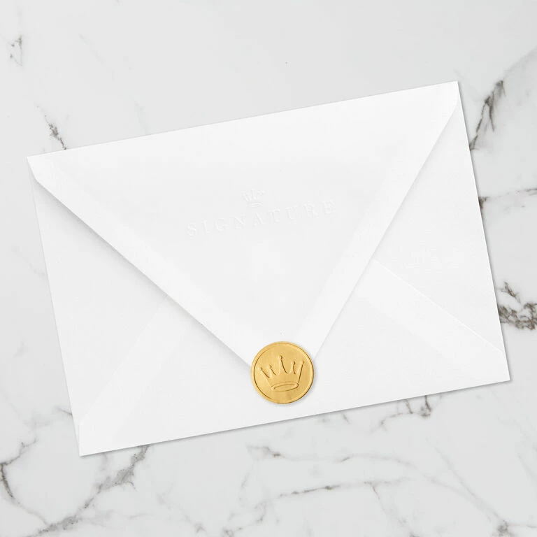 - Includes one card and one lined envelope with a Gold Crown seal. Envelope color may vary.