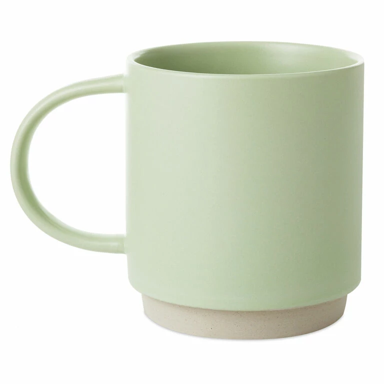 - Pale green ceramic mug features a pickle in sunglasses design and a funny message, oversized handle and recessed bottom designed for stacking.
