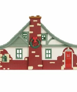 Celebrate home at the holidays with this cute addition to the Keepsake Korners neighborhood. 40th in the Nostalgic Houses and Shops series, this Christmas tree ornament depicts a classic tudor-style home dressed up for the holidays with a festive wreath on its stately masonry chimney and the stockings hung with care over the fireplace. Early 1900s architecture with a gable roofline, decorative timbering and red brick add iconic charm.